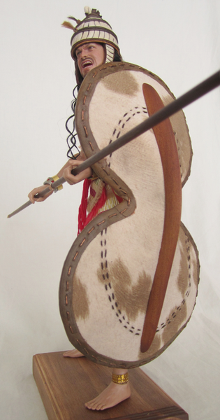 1700-1200 bce; with boar tusk helmet and Figure 8 shield